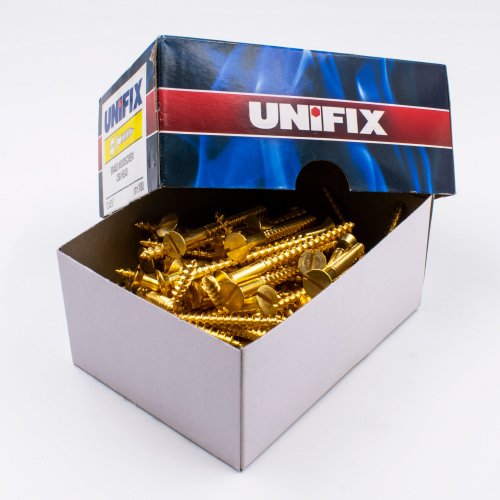 This box of Unifix woodscrews is designed for use with wood, timber and composite.