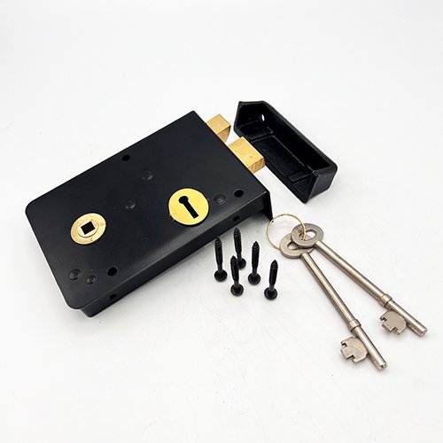 The Union 1439 Rim Sashlock is a very popular large case Rim Lock found throughout the UK. A basic security surface mounted product often found in residential or light commercial environments. Identified by the case dimensions and the offset heights of the keyway and spindle. The 2 extended length keys provided will reach through the thickness of the door from the outside. The 1439 features Antique style construction and rustic styling.