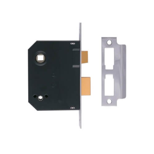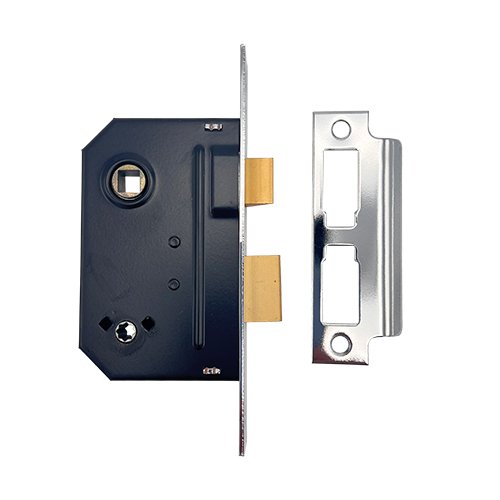 Finished with a black, powder-coating on the steel case and a 12.5mm Zinc alloy deadbolt and an 11mm Zinc alloy latch.
