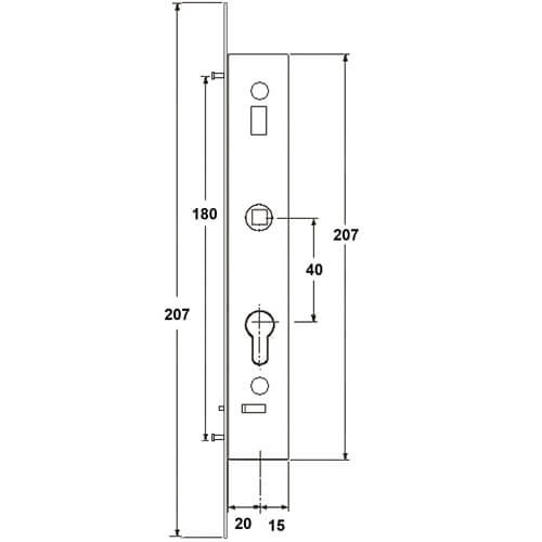 Espags, Mila, Multipoint and UPVC, Window LocksMila Ideal Inline Espags With 20mm Backset and 16mm Radius Faceplate
