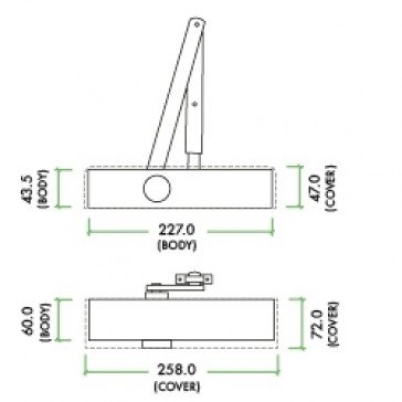 Vier VDC0025NC Size 2-5 door closer c/w back check & delayed action – silver flat arm & body (P.A bracket included) silver semi-radiused cover. Power adjustable 2-5, suitable for doors up to 100kg, 1250mm wide. Suitable for inward and outward opening doors. Non-handed. Adjustable closing speed. Adjustable latch speed. Adjustable backcheck. Adjustable delayed action. BS EN 1634. Certifire CF5549. Steel door 20-240mins. Timber door 20-120 mins. BS EN 1154 : 1996