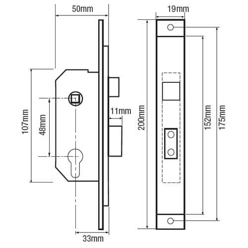 Willenhall M5 Euro 2″ Mortice Sashlock FP19 Extended