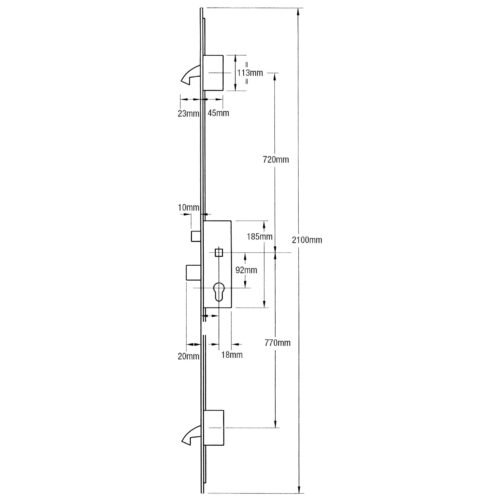 Hooks on this lock are automatically engaged as the door is closed without needing to lift the handle. The handle will retract the hooks from the inside and a further turn of the key deadlocks the door.
