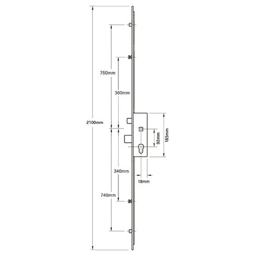 This Winkhaus Cobra multipoint door lock features 2 Rollers, 2 Mushrooms1 Deadbolt & 1 Latch.