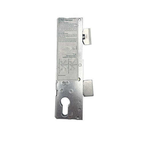 Winkhaus Cobra locks always feature a latch and deadbolt in the gearbox. They are available in lift lever, split spindle and key wind operation. These are easily identifiable by the sticker on the side of the gearbox. If the writing is blue, that’s lift lever, if its green, then the lock is split spindle, whereas red means key wind. We often will only stock the green, split spindle locks, where both a lift lever and split spindle version are available. That’s because the split spindle can be used as a lever operated lock by inserting a solid spindle all the way through the follower. There’s also no price difference between the locks, so the added versatility of the split spindle lock makes it a suitable replacement for a larger range of locks.