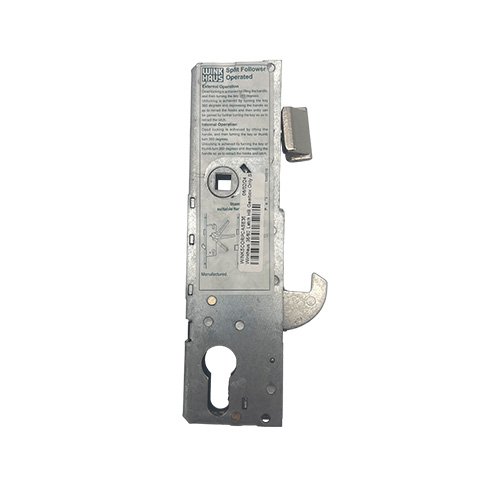 Winkhaus Cobra locks always feature a latch and deadbolt in the gearbox. They are available in lift lever, split spindle and key wind operation. These are easily identifiable by the sticker on the side of the gearbox. If the writing is blue, that’s a lift lever, if it’s green, then the lock is a split spindle, whereas red means key wind. We often will only stock the green, split spindle locks, where both a lift lever and split spindle version are available. That’s because the split spindle can be used as a lever-operated lock by inserting a solid spindle all the way through the follower. There’s also no price difference between the locks, so the added versatility of the split spindle lock makes it a suitable replacement for a larger range of locks.