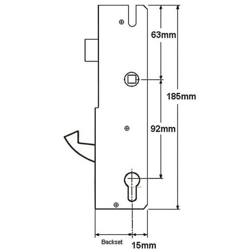 All Winkhaus gearboxes, apart from the AV4 measure 185mm high x backset + 15mm, making them the smallest gearboxes on the market. They measure 64mm between the latch and hook bolt and 63mm from the spindle to the top of the gearbox. They also feature a groove above the spindle to aid in the fitment of handles with a screw above the lever.