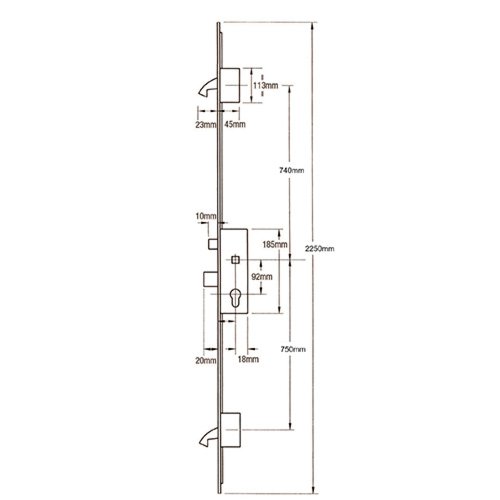Winkhaus Trulock Latch Deadbolt 2 Hooks 24mm U-Rail Faceplate Multipoint Door Lock – Option 1 (top hook to spindle = 740mm)