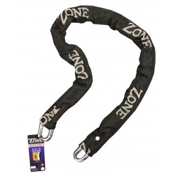 The protective covering protects both the chain and the application from damage during use. • Hardened Steel square link chain in a black protective sleeve • Weatherproof • Ideal for use on gates, bikes & motorcycles • Sold Secure Silver