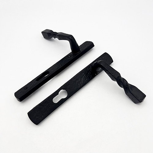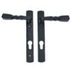 This handle has a backplate measuring 220mm and screw centres measuring 212mm and is compatible with most 92mm PZ multipoint locks.